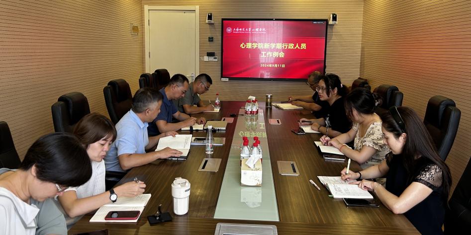 2024年9月11日下午,心理学院行政工作例会在教苑楼D座401召开,对新学期的行政工作进行布置,对各位行政人员的职责做出了明确分工。会议由副院长陈宁主持,全体党政班子成员、学院行政老师出席会议。