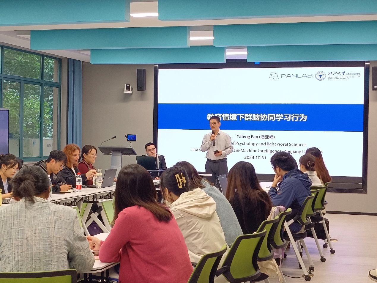 10月31日下午,浙江大学心理与行为科学系百人计划研究员、博士生导师,兼脑机智能全国重点实验室双聘研究员潘亚峰,应邀作题为《教育情境中群脑协同学习行为》的主题讲座,讲座由心理学院副院长罗俊龙教授主持。