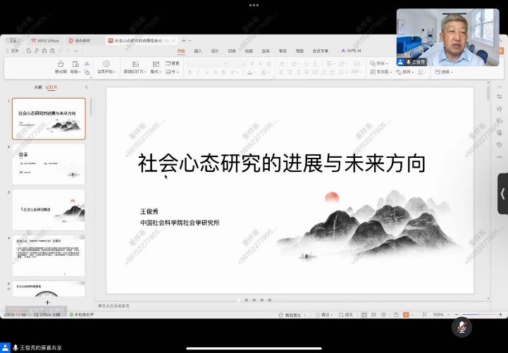 报告中,王俊秀教授细致分享了近年来社会心态研究在理论框架构建、研究方法创新等方面的最新进展,并深刻阐明社会心态作为社会情绪与心理状态的高度凝练,对于洞悉社会现象本质、预测社会发展趋势具有举足轻重的价值。同时,他也高瞻远瞩地指出,未来研究应更加聚焦于社会心态的多元性与复杂性,并积极探索跨学科合作路径,以期不断拓展研究的深度与广度。