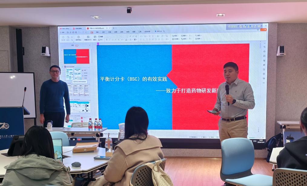 2024年12月4日,扬子江药业集团人力资源总监孔亮应邀为我院研究生作《平衡记分卡的有效实践——致力于打造研发新质生产力》的专题讲座,讲座由我院王怀勇副教授主持。