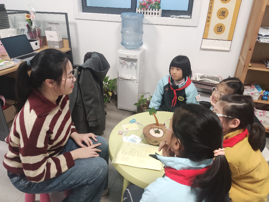 倪一萌同学在上海市静安区闸北实验小学明德校给心理委员进行“安慰好方法”的培训
