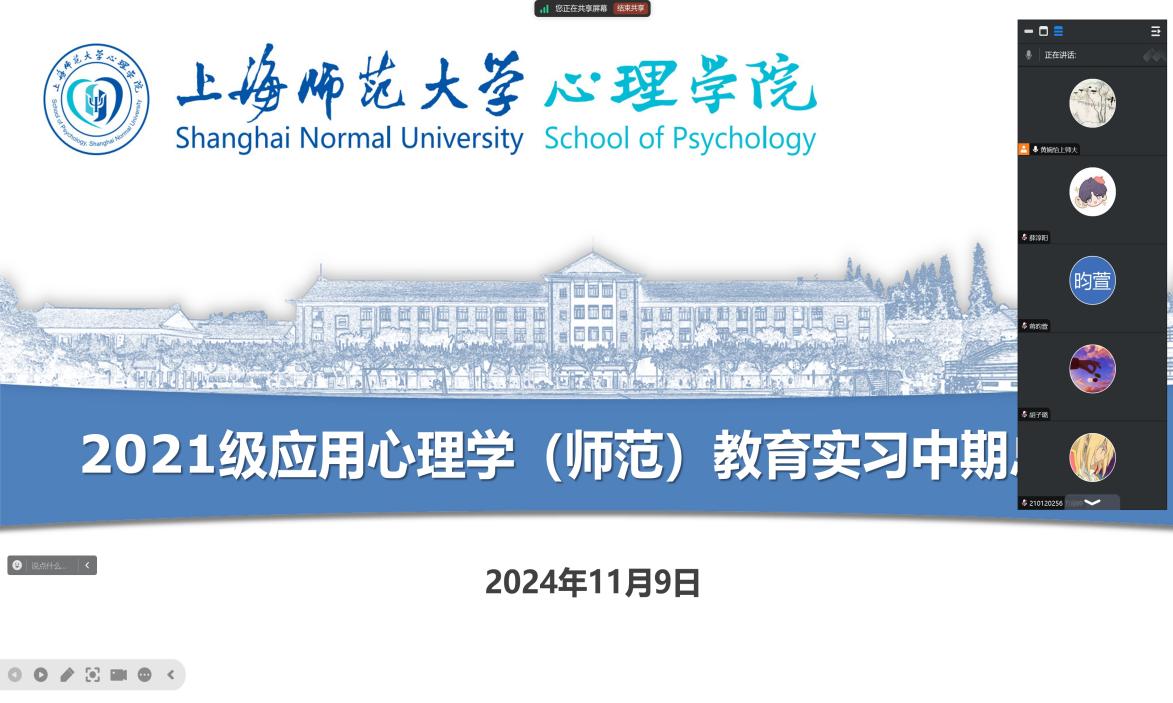 心理学院为每位师范生分配了一名学院指导老师,指导老师全程指导学生的教案设计、上课以及各项班主任工作,并前往各大中小学听师范生讲公开课、参与教研活动等。学院时刻关心师范生的实习情况和遇到的困难,及时给予实习生各项支持。2024年11月9日下午,统筹师范生实习工作的黄婉怡老师和师范本科专业负责人张和云老师组织了教育实习中期交流会,邀请各位同学汇报实习期间的所见所闻和心得体会,同学们介绍了各自实习学校的基本情况,讨论了如何管理学生纪律、不同学校学生的特点和心理健康工作上遇到的困难等,不少同学纷纷贡献自己的锦囊妙计,黄婉怡老师和张和云老师也对同学们进行各种建议和鼓励。这样的交流和分享让同学们收获满满,不再畏惧实习。