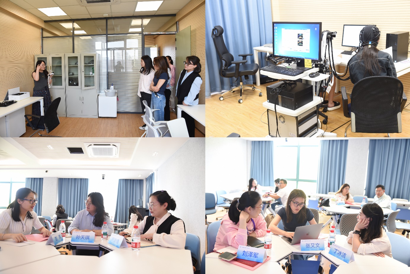 之后,与会教师参观了心理学院市三星级实验教学示范中心,通过实地观摩,进一步了解脑智发育研究的最新成果与技术应用。在活动最后的结对研讨环节中,指导老师与学员就未来的课题申报、论文撰写等展开热烈讨论,现场氛围活跃。