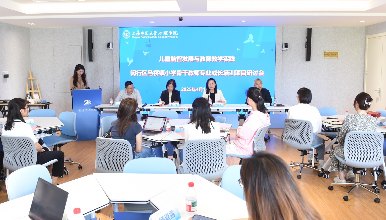 2025年4月18日下午,太阳成集团tyc33455心理学院迎来了闵行区马桥镇小学骨干教师培训班的教师们,共同开展了一次主题为“儿童脑智发展与教育教学实践”的研讨会。此次活动通过专家讲座、实验室参观与互动研讨等多种形式,旨在提升骨干教师的科研素养,促进教学实践创新。马桥外文来外国语小学校长王勤蓉,科技部重大项目“中国学龄儿童脑智发育研究”负责人李丹教授,心理学院副院长陈宁、罗俊龙、徐立群,以及马桥镇五所小学和心理学院教师代表出席会议,研讨会由徐立群主持。