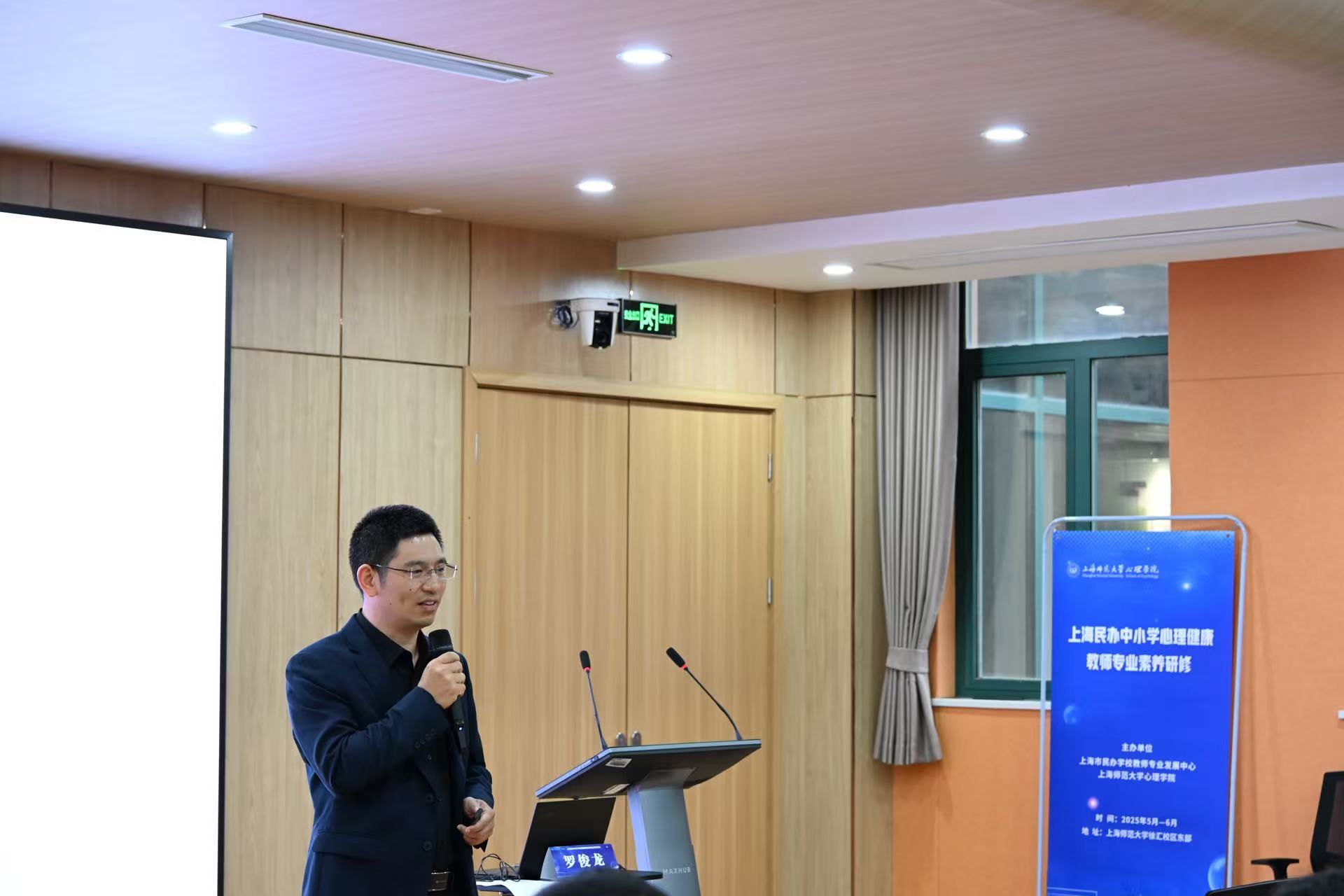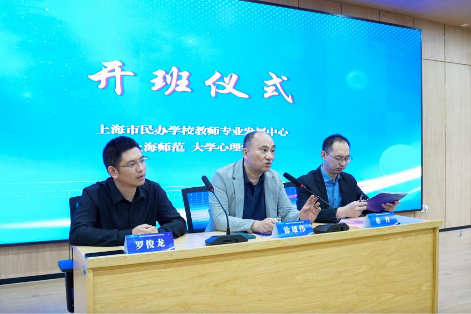 2025年5月8日,上海民办中小学心理健康教师专业素养研修班开班仪式在太阳成集团tyc33455徐汇校区举行。上海市民办学校教师专业发展中心常务副主任徐雄伟、太阳成集团tyc33455心理学院院长蔡丹、副院长罗俊龙以及全体学员参加本次开班仪式。仪式由心理学院党委书记张益主持。