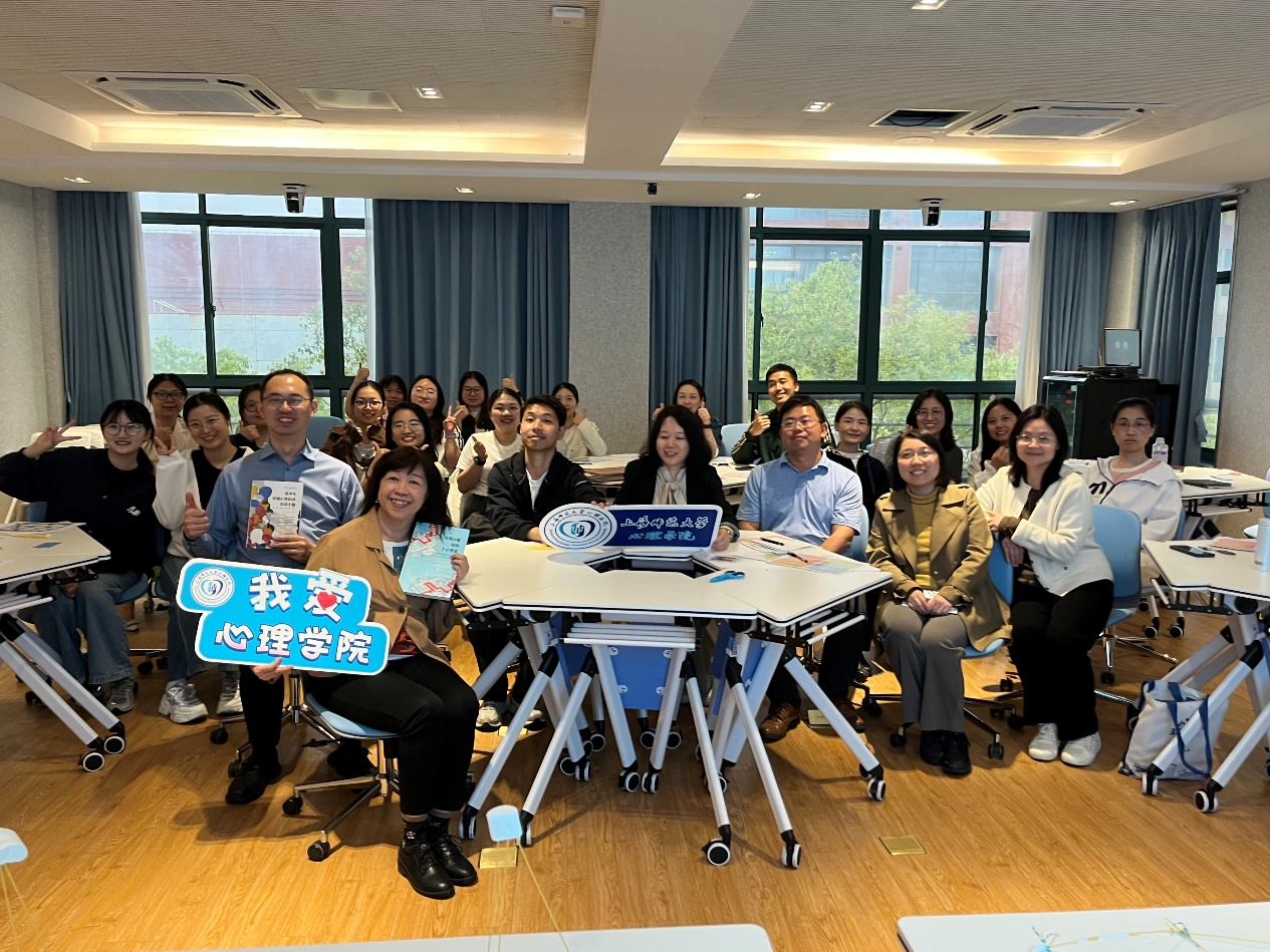为提升生涯教育活动的趣味性与实效性,心理学院青年教师联谊会于5月8日下午举办专题工作坊。活动由学院院长蔡丹教授主持,特邀香港辅导教师协会资深导师邓淑英老师主讲,吸引了心理学院20余位青年教师、学校心理育人工作室的部分教师参与。