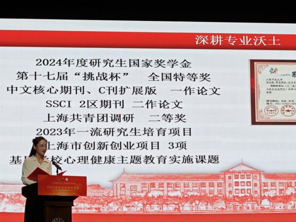 同日,心理学院联合教育学院、学前教育学院举办了毕业生党员主题党课教育。心理学院赵悦娇同学作为优秀党员代表毕业生进行宣讲,向大家介绍了她自从入校以来的心路成长历程,表达了她对母校的感恩之情。