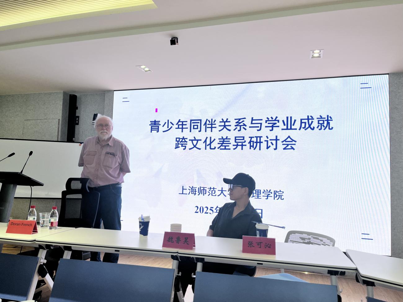 在学术研讨会中,Doran French教授深入阐释了“文化凸显性”的概念,指出其兼具相对性与关联性两个核心表现。随后,他结合多项跨文化研究成果,详细展示文化凸显性在儿童社会关系与社会功能中的表现。Doran French教授凭借深厚的学术积累与丰富的研究经验,分享了最新的跨文化研究成果与前沿观点,为心理学院师生带来一场学术盛宴。