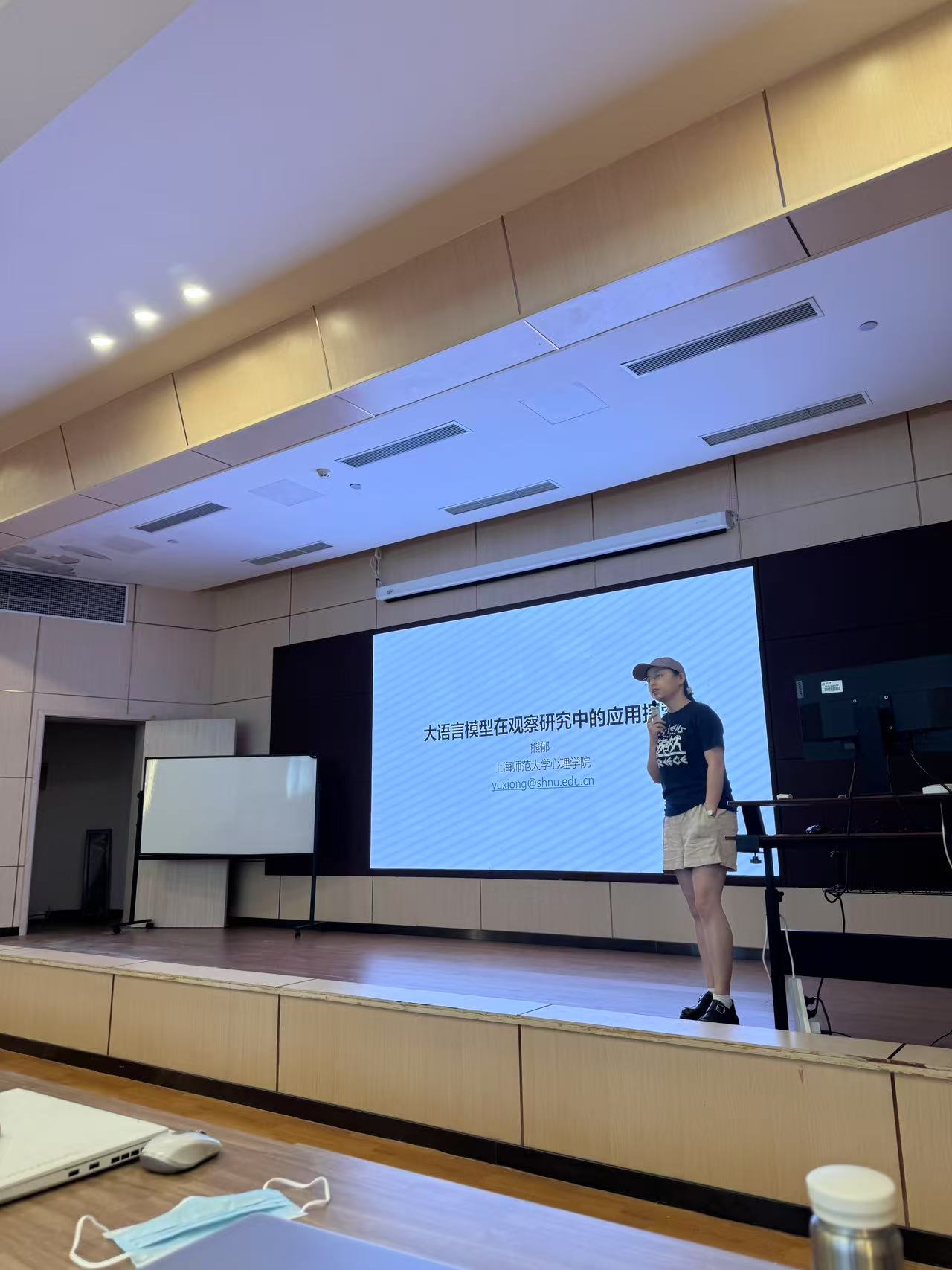 熊郁老师以“心理学 + 计算科学”的跨界思维为切入点,结合互联网企业求职经历,解析心理学专业在业界的角色定位。她重点展示了大语言模型在观察研究中的创新应用,通过具体编码案例演示AI 技术与心理学研究的融合路径,为学生打开“学术理论—产业实践”的转化视野,凸显跨学科研究的现实价值。