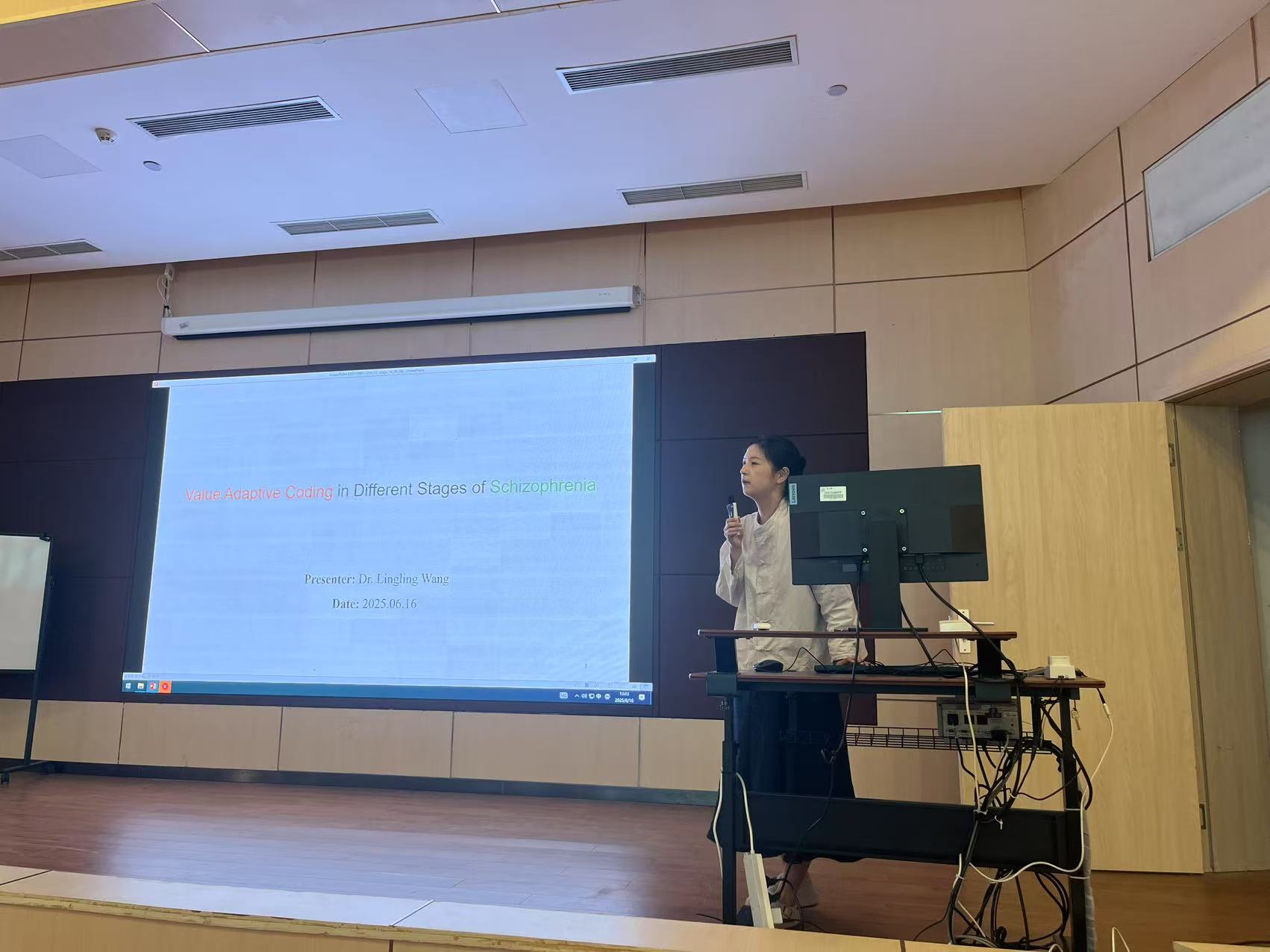 王玲玲老师围绕“精神分裂症谱系人群的价值自适应编码机制”进行分享,聚焦疾病不同阶段群体在价值认知加工中的表现,深入探讨其与阴性症状(尤其是快感缺失)的关联性。她特别指出,“价值自适应编码”作为近年新兴研究领域,正逐步揭示动机与情感体验的神经机制,其研究范式为精神疾病领域提供了全新的探索维度,带领同学们触摸学科前沿的学术脉搏。